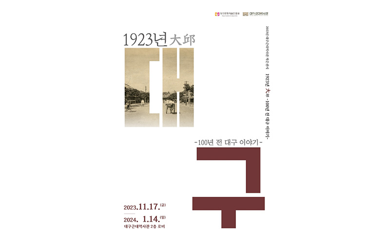 이 특별기획전 종료 이후에는 2층 로비에서 작은 전시 <1923년 大邱-100년 전 대구 이야기->가 11월 17일(금)~2024년 1월 14일(일)까지 열리고 있다. 시민과 함께 ‘100년 전 대구와 오늘날 대구’의 모습을 살펴보는 시간을 갖고자 기획한 전시다. 100년 전인 1923년 대구에는 눈에 띄게 크고 작은 변화들이 일어났다. 서문시장이 옮겨지고, 대구상업고등학교, 대구사범학교 등 100년의 역사를 가진 학교들이 개교했다. 다양한 대구 예술인들의 참여로 큰 미술전람회가 개최했고, 전국에서 14만여 명이 다녀간 전국특산품진열대회도 열렸다. 그리고 1923년 겨울은 대구 기상관측 이래 최강한파가 몰아친 해였다. 이러한 다양한 변화와 사건들을 한자리에서 살펴볼 수 있도록 당시 신문 기사와 사진, 관련 실물 등 50여 점을 전시하고 있다.