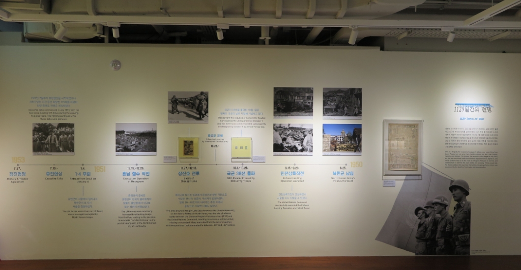 유엔의 결의 아래 하나로 모인 병력지원국은 총 16개국입니다. 전시실에 마련된 대형 지도 위에 전쟁 당시 유엔군이 실제 사용했던 나침반, 군화와 군모 등 다양한 자료를 전시하여 대한민국을 돕기 위해 많은 나라의 도움이 있었다는 것을 한눈에 파악 할 수 있도록 연출했습니다.